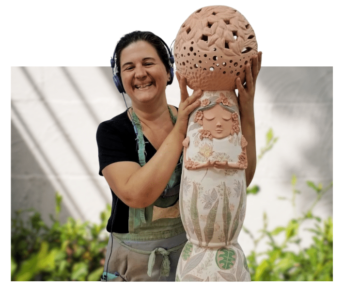 Hoje, além dos cursos presenciais e venda de peças, faz questão de responder um a um, todos os alunos online, para garantir que o aprendizado da cerâmica esteja ao alcance de todos!
